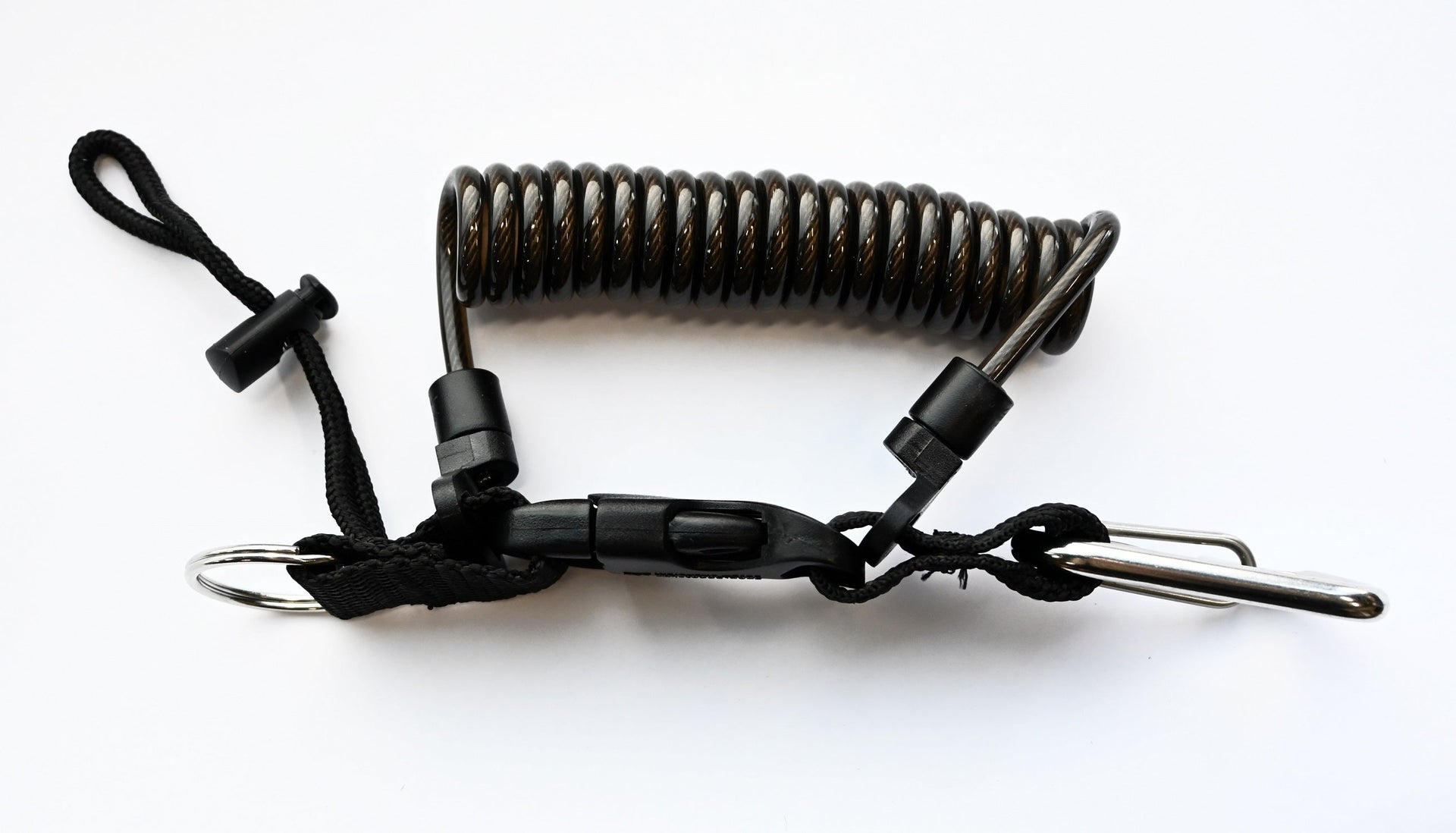 Easy attachment. Split ring and lanyard to attach equipment.
