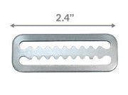 Rust free 316 stainless steel .060" thick 2" webbing slots. Features slip-free design. Will work on most rubber and webbing belts.