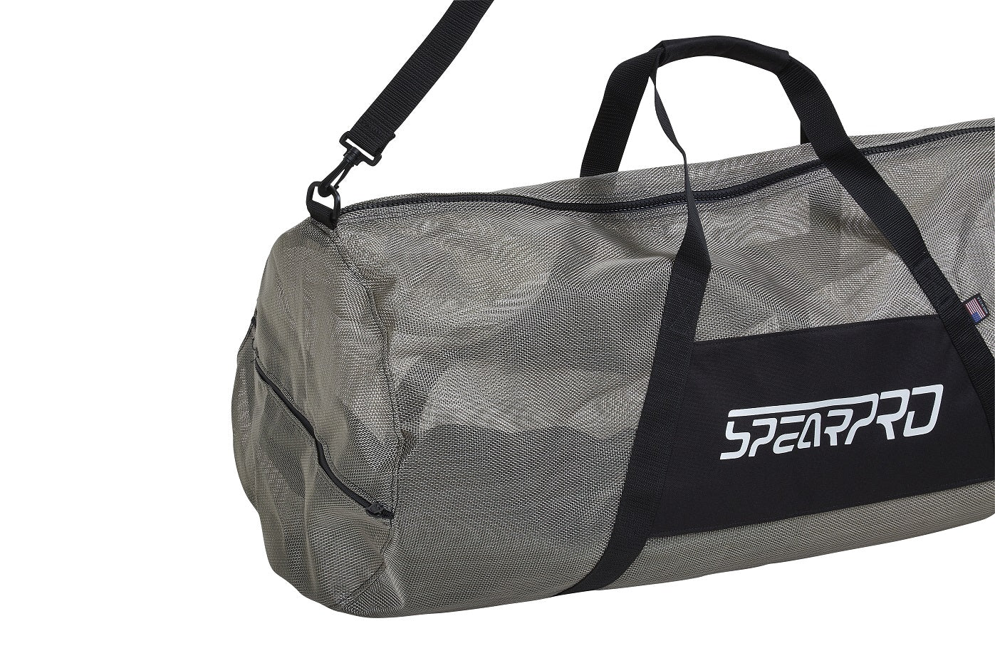 The SpearPro mesh duffle bag can accommodate the longest fins in the market and has room for 2 wetsuits and 2 sets of everything else.