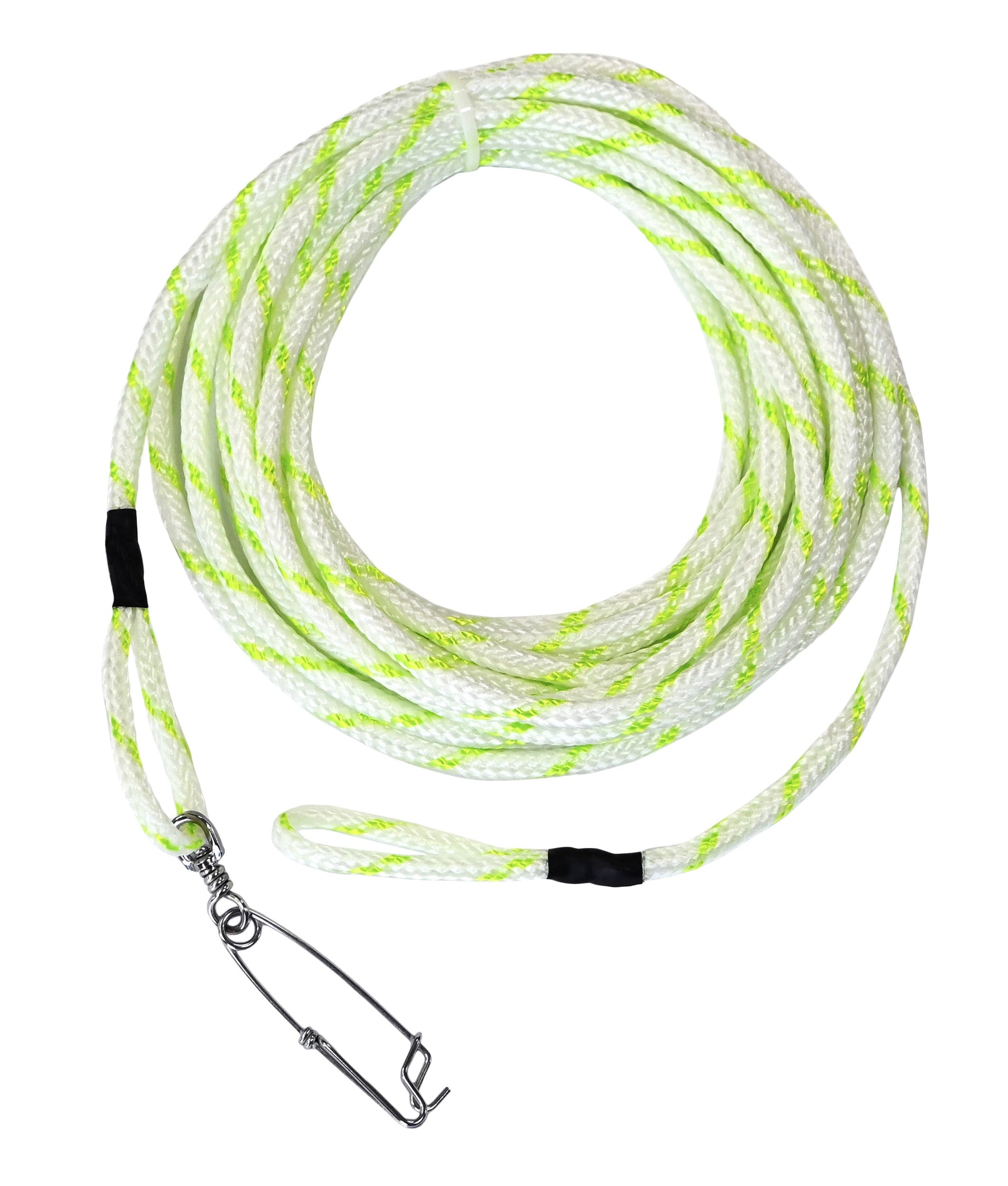 The SpearPro Floatline is equipped with a sturdy tuna clip with swivel for easy and secure attachment. Connect one end to your speargun and the other to your float, or use it without a float when maneuvering through kelp. Perfect for fighting fish, this versatile floatline can also be used as a marker for prime lobster holes. Available in shorter lengths, it allows you to connect multiple floats or easily trail a float to hang your bag while lobster diving.