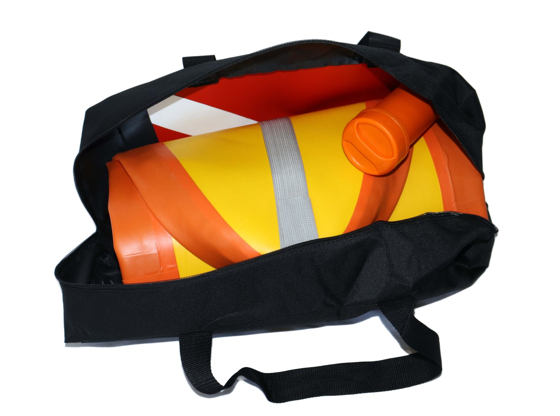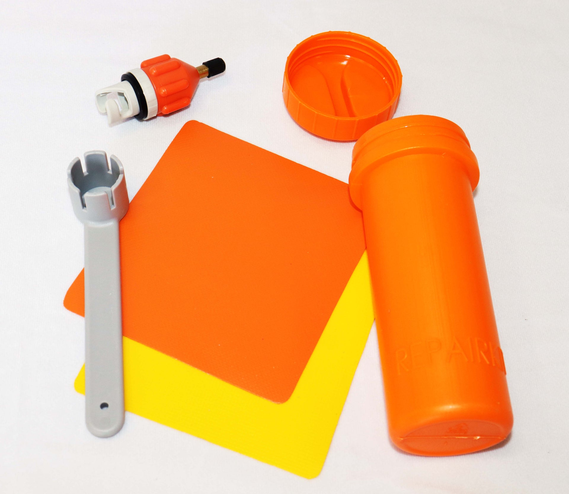 Comes with inflator adaptor, flag, repair kit, and carrying case.