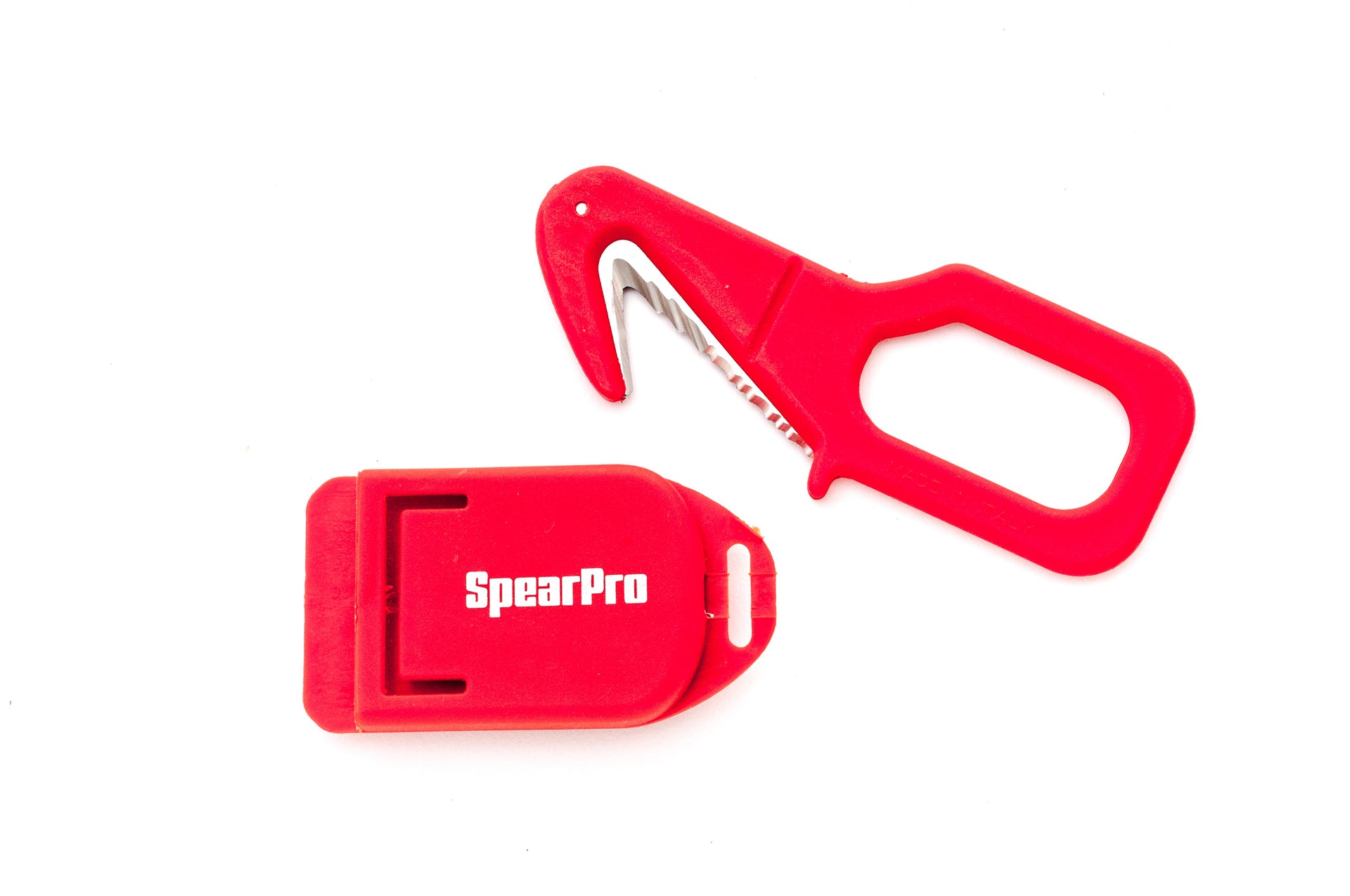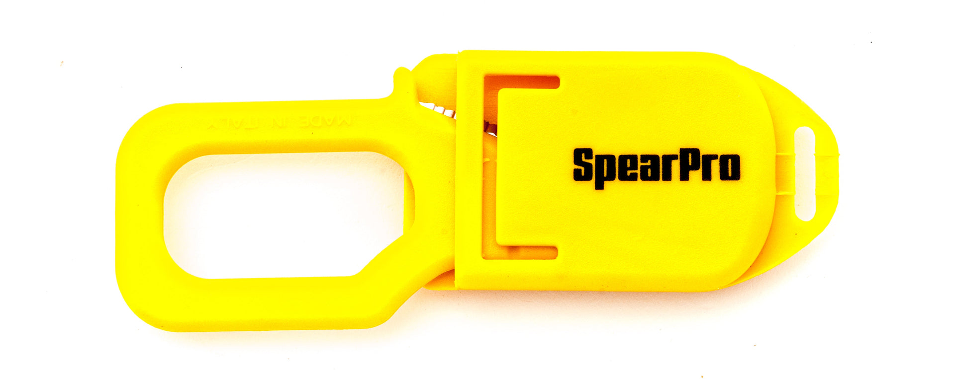 The SpearPro line Cutter is the cutting tool that every diver should carry. Sharper than a standard dive knife, the line cutter uses a 420 surgical grade stainless steel blade that can easily cut thru braided line, monofilament, or any other line entanglement. Housed in a heavy-duty fiber reinforced nylon body, the blade is easily removed for cleaning and replacement.