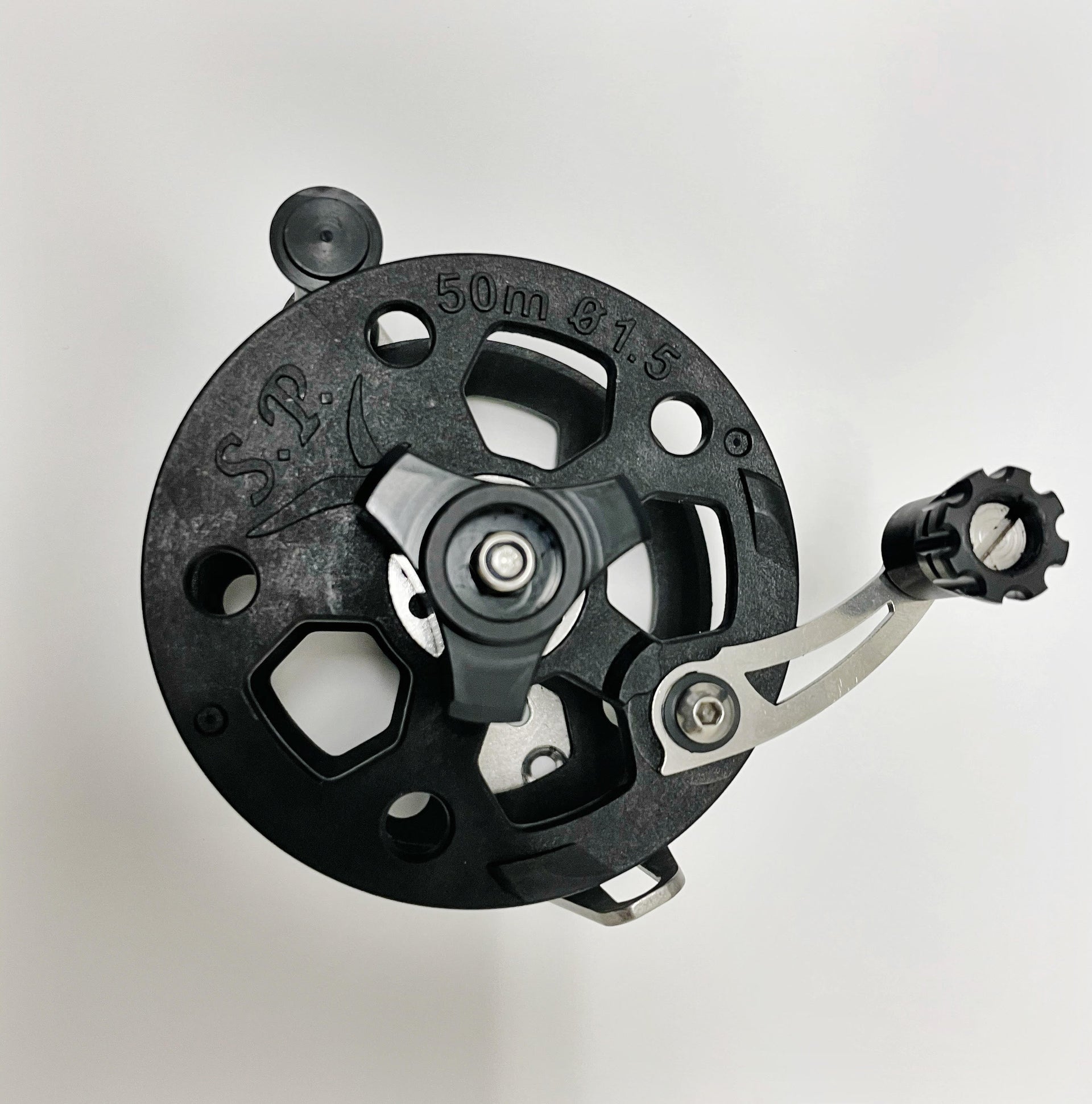 The SpearPro Drag System Horizontal reel frame is made of marine stainless steel, all the other constructional components are machined from solid block with CNC machines including the coil. Numerous slots well integrated in the design allow for a super light weight reel. The drag is fully adjustable, and will maintain the selected position unlike most other reels in the market. The pull-out handle facilitates the line recovery. This reel is designed to attach to most spearguns.